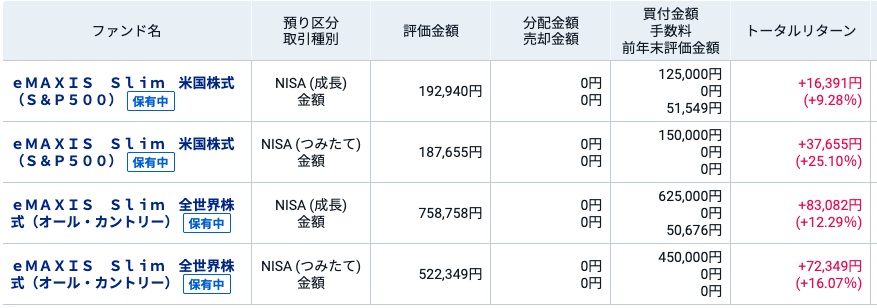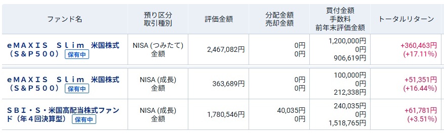 4月のトランプショックでは一時的にマイナスになっていたと思います。そこで狼狽売りせず耐えた結果、最終的に大きなプラスに繋がっています。