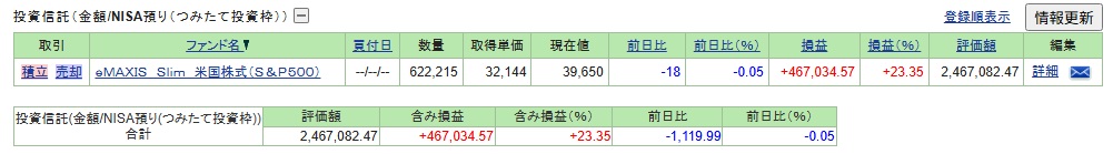特につみたて枠は2年弱で+46.7万円。銀行預金ではこうはいきません。