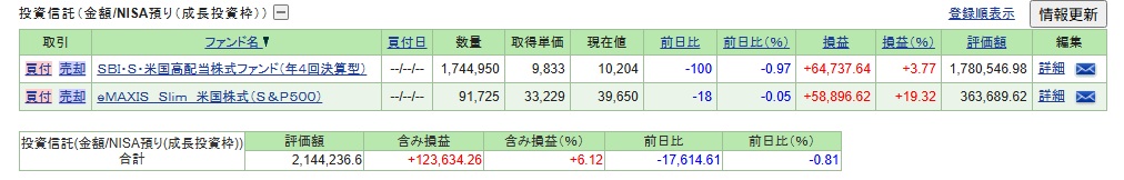こちらはSBI・S・米国高配当株式ファンド(年4回決算型)(SBI SCHD)メインの投資になっています。