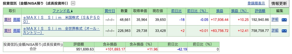 つみたて投資枠で毎月5万円、余剰資金あるときに成長投資枠で購入のスタイル。