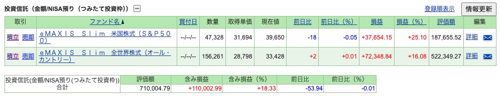 当初はS&P500とオルカンで攻めるもリスクを少しでも下げるために途中からオルカン1本に変更。