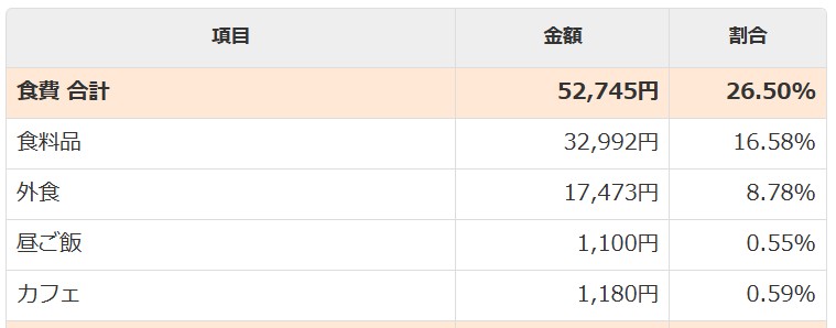 引き続き自炊メインの月になります。食費合計は52,745円。